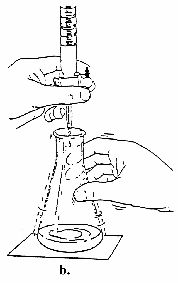 the stopcock between your fingers and thumb. Hold the Erlenmeyer flask so that the tip of